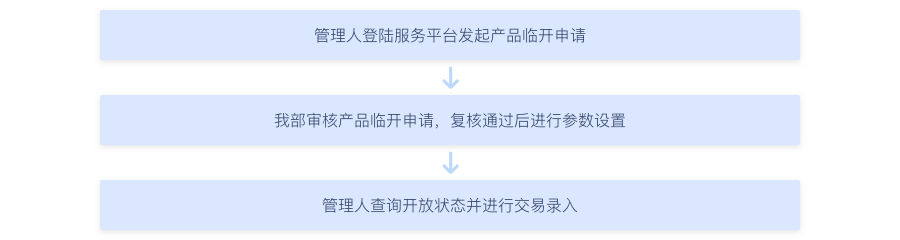 已审核通过的临开申请办理完成后,管理人可在产品直销或代销平台查询产品开放状态,并办理相关申购/赎回业务。
