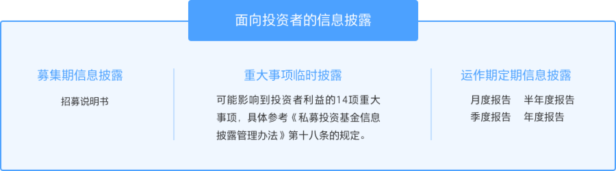 | 基金募集期及运作期间应披露的其他信息 | 根据基金合同约定 | 私募证券投资基金、私募股权及创业投资基金 | |