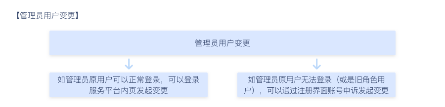 如需对用户信息进行变更(包括用户姓名、电话、邮箱),可使用管理员用户登录服务平台【权限管理】-【用户管理】-【变更】or【管理员维护】-【变更管理员】,准确填写变更后的用户信息,其他流程参照管理员用户开通流程办理。