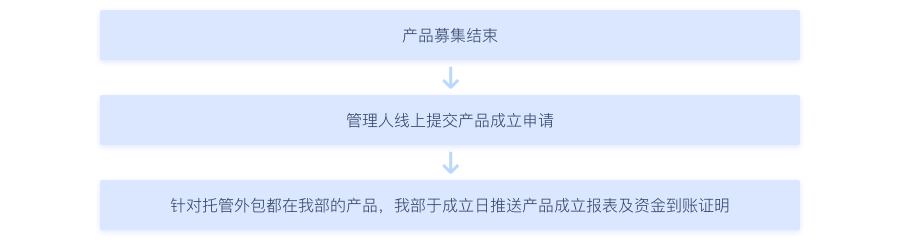 产品募集结束时,管理人需及时将募集结束情况通知我部,确定产品成立日,我部对接启动产品成立处理流程。