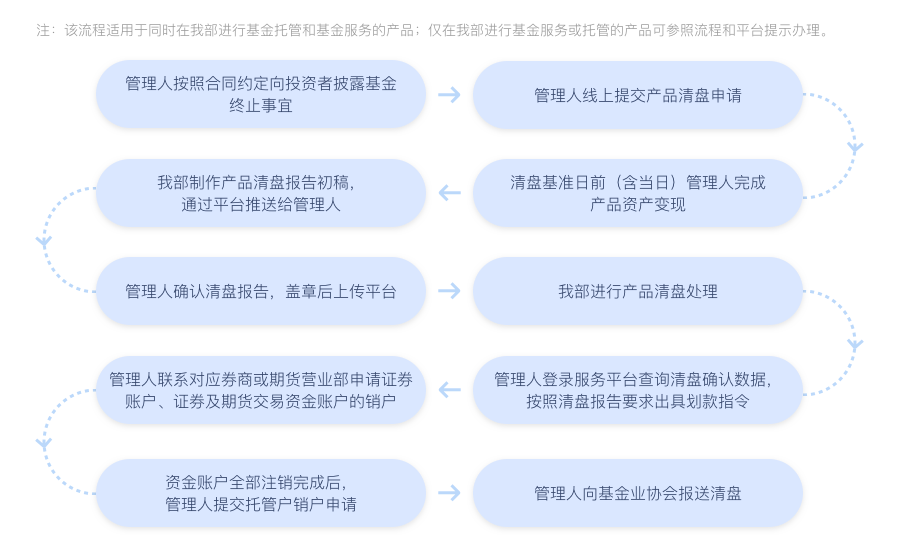 以下流程针对由我部提供托管及外包服务的产品,仅在我部进行基金服务或托管的产品可参照下述流程和平台提示办理。